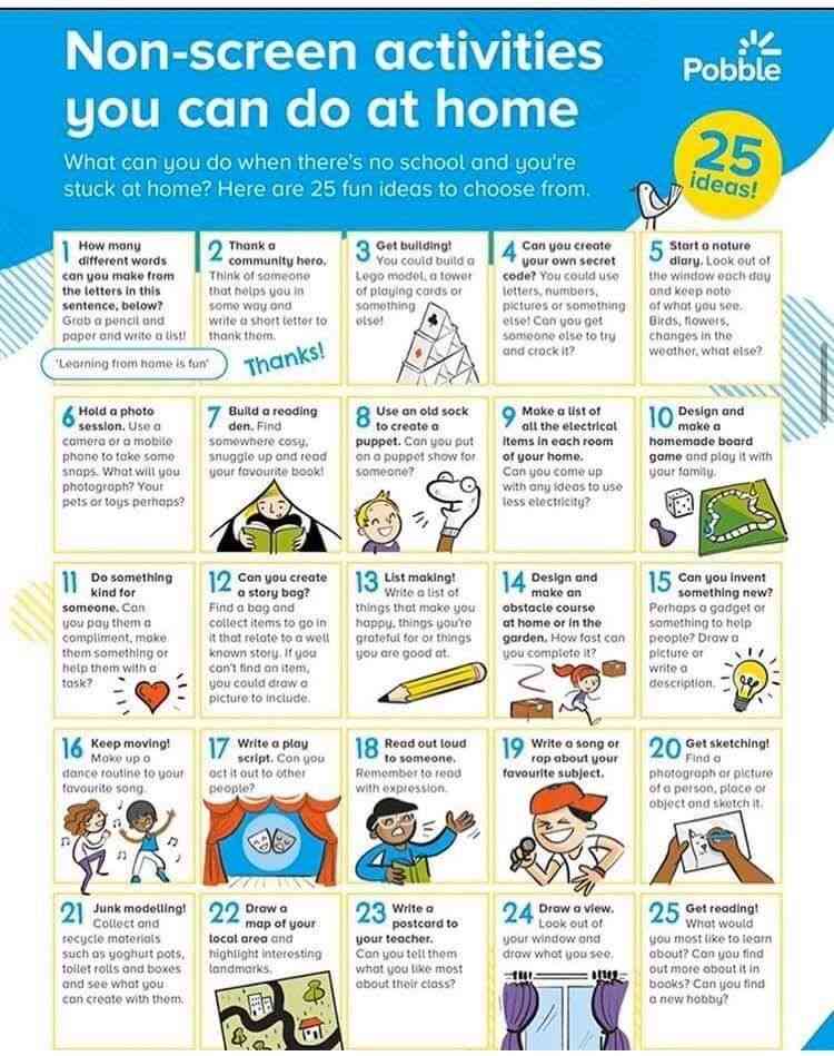 What can you do when there is no school and you’re stuck at home? Here are 25 activities you can do at home.