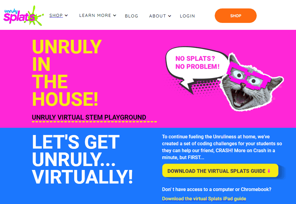 a) Free 2 packs of Splats (coding hardware) through our grant here: https://unrulystudios.typeform.com/to/kbcRPn